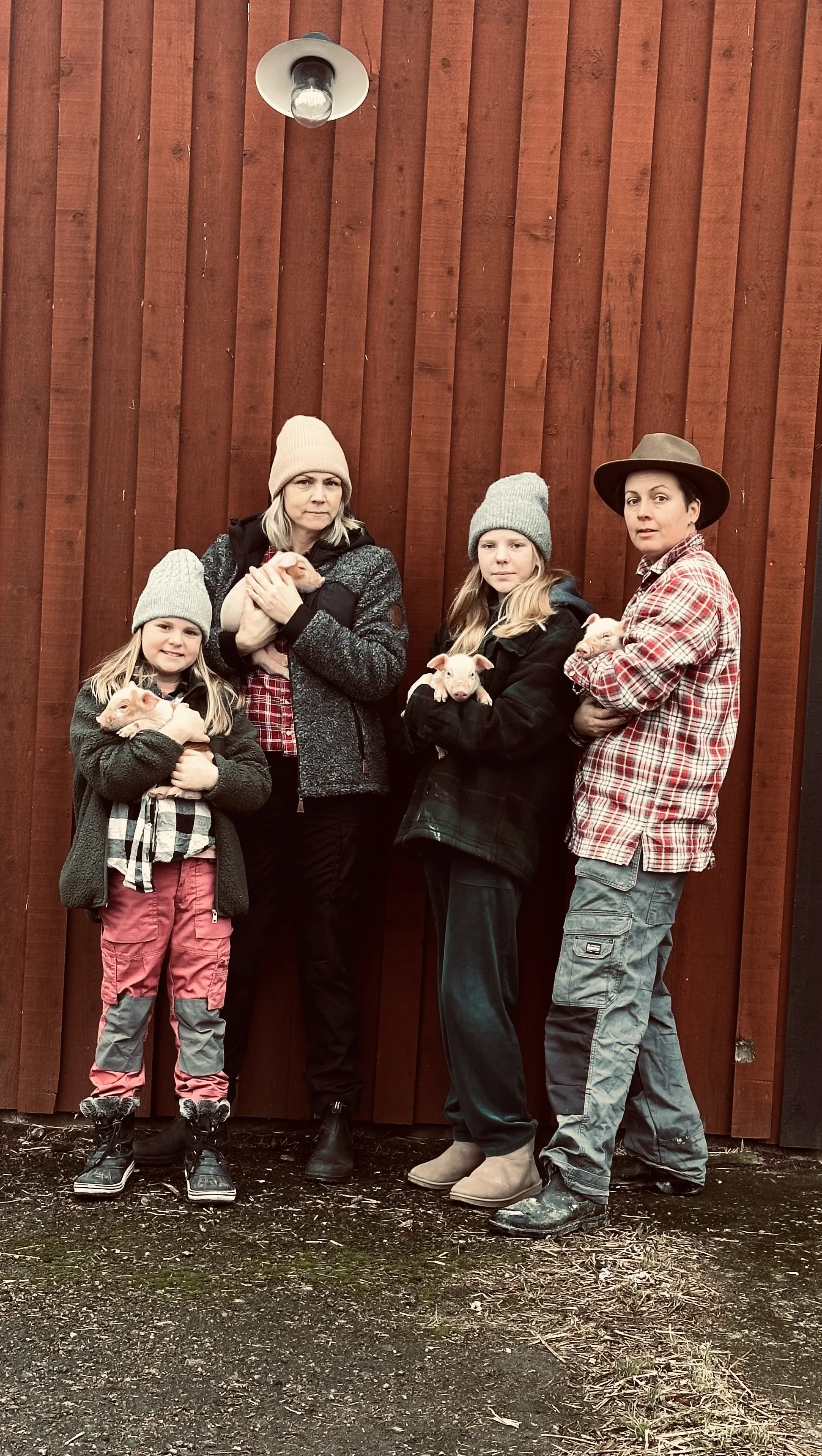 I tredje generationens händer drivs vår helintegrerade grisgård vidare – nu av oss fyra starka kvinnor, alltid med omtanke och närvaro genom hela djurens resa. Samtidigt bär vi med oss nya mål och målsättningar för framtiden, för att utveckla gården vidare med samma ansvar och engagemang.